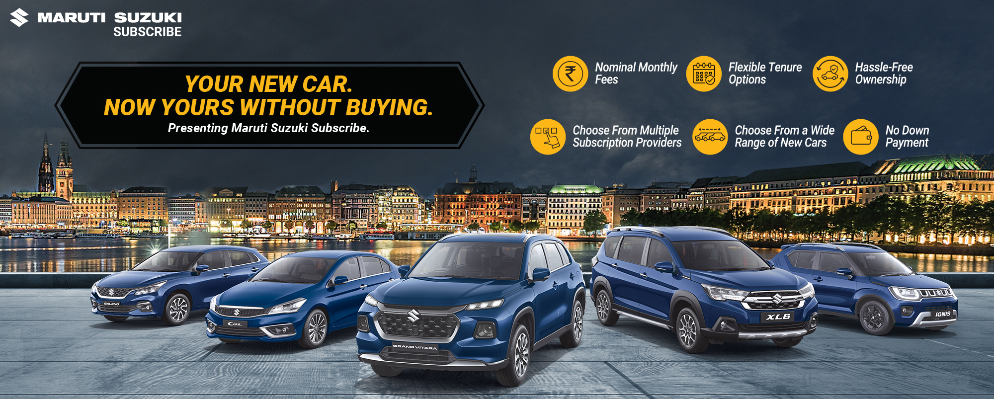 Maruti Suzuki Subscribe enables all customers to enjoy driving their preferred Maruti Suzuki cars without having to deal with all the financial responsibilities that come with owning a car.All you need to do is opt for a monthly subscription plan at a fixed monthly fee, which includes the routine maintenance and insurance costs, and choose a flexible tenure. At Standard Motocorp in, Burhar Road, Shahdol, all Hatchback, Sedan, SUV, the MUV models line-up includes Baleno, Invicto, EVitara, Jimny, Ciaz, Ignis, Fronx, Grand Vitara, XL6. Here, you will enjoy Maruti Suzuki Subscribe benefits such as: